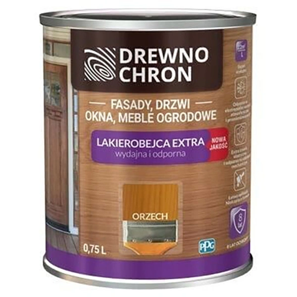 Lakierobejca Extra Orzech jasny 0,75L idealnie sprawdzi się do ochronnego i dekoracyjnego malowania elementów drewnianych, takich jak drzwi, okna, ramy, boazeria, listwy wykończeniowe, meble ogrodowe, ogrodzenia, altany, pergole czy domki rekreacyjne. Produkt może być stosowany zarówno przy nowych realizacjach, jak i podczas odnawiania wcześniej malowanych lub impregnowanych powierzchni, pod warunkiem odpowiedniego przygotowania podłoża.