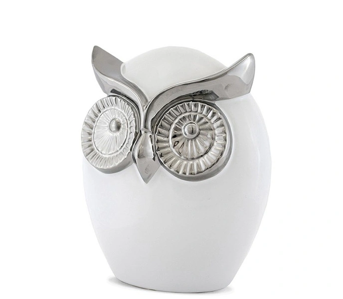 Figurka Sowa biała srebrne oczy i uszy 13,5 cm