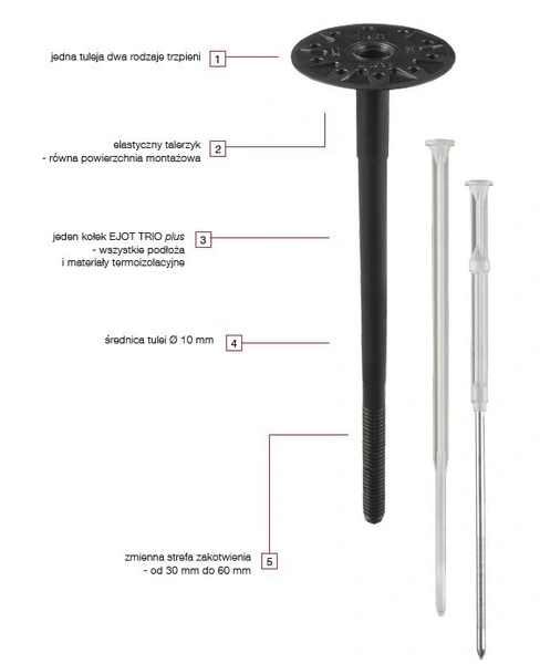 - Typ: łącznik EJOT TRIO Plus TO do systemów ociepleń.