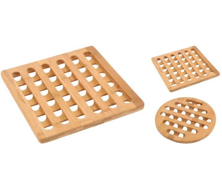 - Starannie wykonana podkładka drewniana Bamboo o wymiarach około 20 x 20 cm – idealna pod standardowe garnki i naczynia.