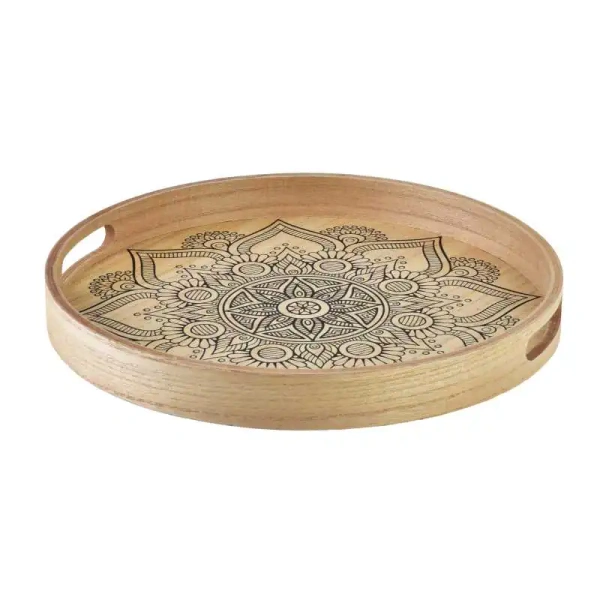 Taca drewniana okrągła wzór MANDALA fi 34,5 cm