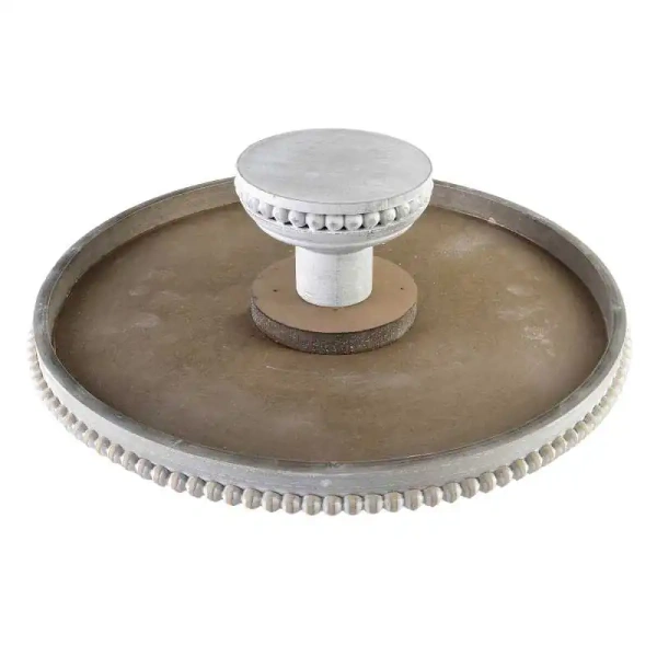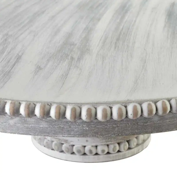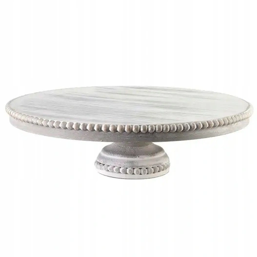 - Patera drewniana biała przycierana na nóżce z kulkami fi 36cm