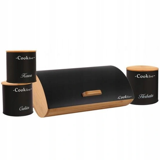 - Chlebak bambusowy z czarną pokrywką metalową +3 puszki 36,5x25cm