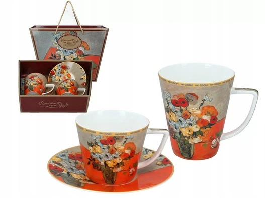 - Van Gogh Filiżanka ze spodkiem 230ml + Kubek 400ml Róże i zawilce
