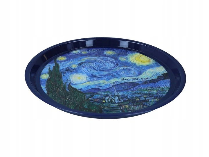 Owalna taca z motywem „Gwiaździstej nocy” wprowadzi do Twojej kuchni i salonu odrobinę artystycznej magii oraz elegancji na co dzień.