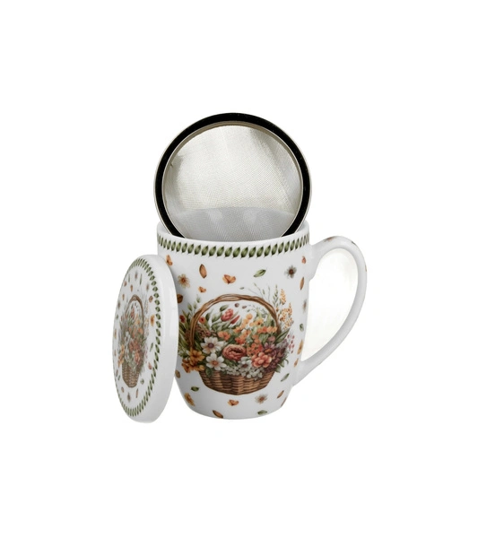 Kubek z zaparzaczem 350ml KOSZ KWIATÓW w pudełku