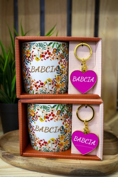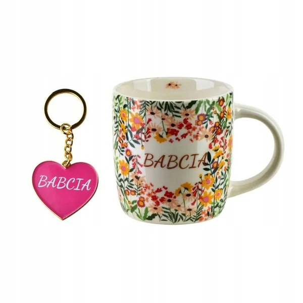 - Kubek Dzień babci w kwiatki z breloczkiem 350ml