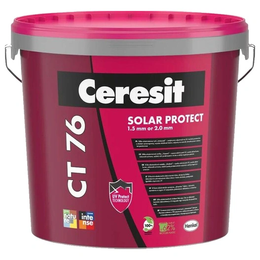 Tynk siliko-elastomerowy CT76 25 kg Ceresit to nowoczesny, dekoracyjny tynk cienkowarstwowy do elewacji, łączący wysoką elastyczność z bardzo dobrą odpornością na warunki atmosferyczne. Dzięki specjalnej recepturze na bazie żywic siliko-elastomerowych produkt tworzy trwałą, estetyczną powłokę o podwyższonej odporności na promieniowanie UV oraz zabrudzenia. Przeznaczony jest do stosowania na systemach ociepleń, podłożach betonowych, tradycyjnych tynkach mineralnych, podłożach gipsowych oraz płytach gipsowo-kartonowych i wiórowych – zarówno na zewnątrz, jak i wewnątrz budynków.