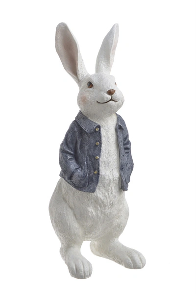 Zając biały szczotkowany w granatowej kurtce 30,5 cm to dekoracja, która od razu przyciąga wzrok swoim delikatnym, lekko matowym wykończeniem i elegancką kolorystyką. Jasne, szczotkowane wykończenie nadaje mu miękkości i przytulnego charakteru, a granatowa kurtka pięknie podkreśla jego sylwetkę i dodaje odrobiny klasycznego, niemal bajkowego uroku.