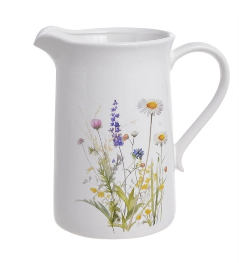 - Dzbanek ceramiczny biały w polne kwiaty