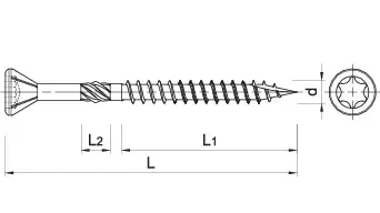 - Przeznaczenie do zastosowań zewnętrznych sprawia, że wkręt dobrze sprawdza się w tarasach, pomostach i zabudowie ogrodowej.