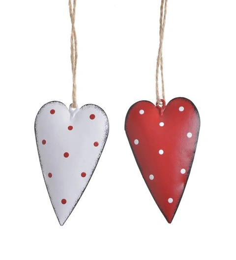 - Metalowe serce białe/czerwone w kropki- zawieszka dekoracyjna 2 szt 7 cm