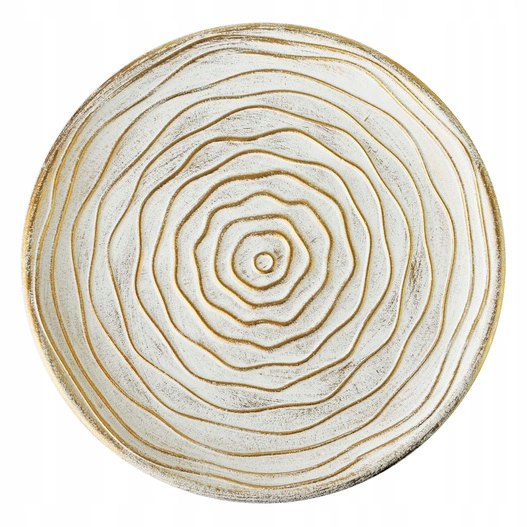 - Falowany brzeg podkreślony złotymi przetarciami – tworzy dekoracyjną ramę dla talerza lub kompozycji.