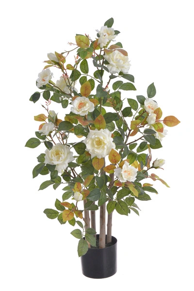 Róża biała w doniczce 100 cm sztuczna roślina ozdobna