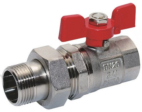 - Zawór kulowy wodny 3/4" z półśrubunkiem z motylkiem Tycner