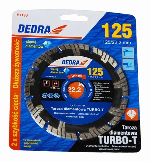 - Tarcza diamentowa Turbo-T do cięcia 125mm DEDRA