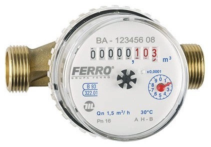 Wodomierze Ferro CD S/D 8 to turbinowe, jednostru-mieniowe liczniki przepływu typu Super Dry z odczytem bezpośrednim na 8 rolkach z cyframi.