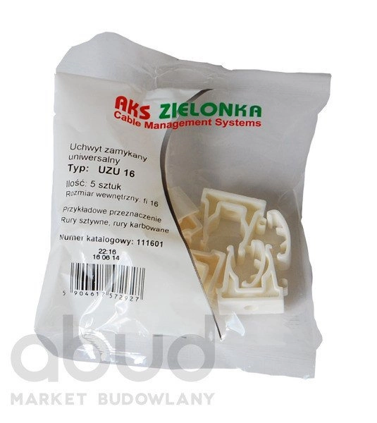 - Uchwyt zamykany do rur UZU-16 mm 5szt AKS ZIELONKA do mocowania sztywnych rur ochronnych typu RL i RLM.