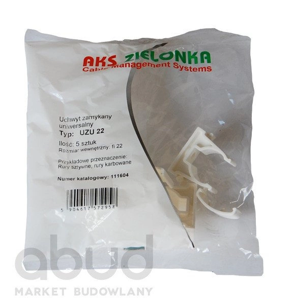 - Uchwyt zamykany do rur UZU-22 mm 5szt AKS ZIELONKA do mocowania sztywnych rur ochronnych typu RL i RLM.