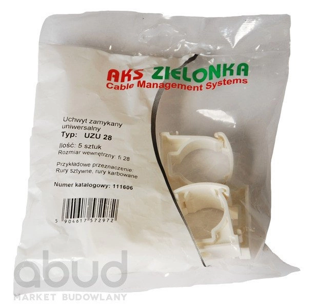 - Uchwyt zamykany do rur UZU-28 mm 5szt AKS ZIELONKA do mocowania sztywnych rur ochronnych typu RL i RLM.