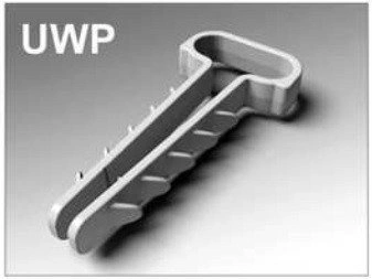 - Uchwyt wciskany płaski UWP 6/12 100szt AKS ZIELONKA- przeznaczony do mocowania przewodów płaskich o wysokości 6 i szerokości 12 mm. Umożliwiają szybki montaż poprzez wciśnięcie uchwytu wraz z przewodem w wywiercony otwór