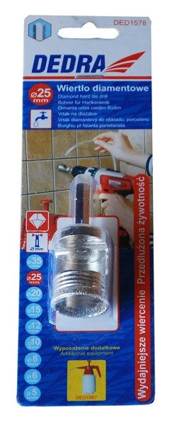 - Diamentowe wiertło do gresu, terakoty, szkła, białej ceramiki, kamienia Dedra DED1578 25 mm