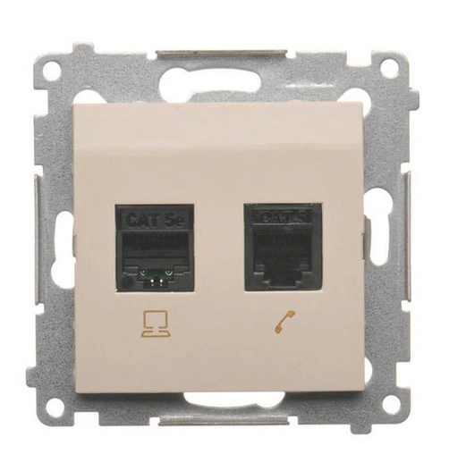 Gniazdo telefon-komputer krem SIMON 54 to funkcjonalne połączenie gniazda komputerowego RJ-45 kategorii 5e oraz gniazda telefonicznego RJ12 w jednym, estetycznym module. Zaprojektowane z myślą o nowoczesnych instalacjach, umożliwia łatwe i bezpieczne podłączenie zarówno sieci komputerowej, jak i telefonu w jednym miejscu. Wysoka jakość wykonania oraz klasyczny kremowy kolor sprawiają, że gniazdo doskonale komponuje się z każdym wnętrzem, gwarantując niezawodność i wygodę użytkowania każdego dnia.