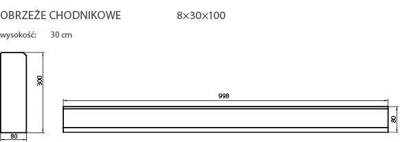 Obrzeże chodnikowe 8x30x100 Szare