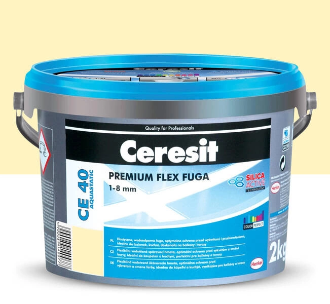 Fuga Ceresit CE 40 służy do spoinowania płytek gresowych, innych typów płytek ceramicznych, szklanych oraz kamiennych (również marmurów), zarówno na powierzchniach pionowych i poziomych. Potrójna Ochrona MicroProtect – formuła zawiera 3 specjalnie dobrane substancje czynne, które zapewniają długą i skuteczną ochronę przeciw grzybom i pleśniom. Formuła chroni nie tylko samą spoinę, lecz również przyległe do niej powierzchnie płytek (strefa inhibicji), zapewniając estetyczny wygląd okładziny ceramicznej. Efekt Aquastatic – powierzchniowe uszczelnienie spoiny (hydrofobizacja) powoduje, że krople wody utrzymują się w formie perełek na powierzchni fugi, co wydłuża znacząco działanie pleśniobójcze oraz chroni fugę przed zabrudzeniami. Zalety te umożliwiają eksploatacje spoiny w miejscach szczególnie narażonych na okresowe działanie wody np. łazienki, prysznice, kuchnie. Może być stosowana wewnątrz i na zewnątrz budynków. Szczególnie polecana, gdy płytki mocowane są na podłożach odkształcalnych: ogrzewane podłogi, płyty wiórowe i gipsowo-kartonowe. Wodoszczelność i odporność na oddziaływanie chemikaliów zapewnia stosowanie fugi Ceresit: CE 79. Dylatacje między płytkami, spoiny w narożach ścian, w połączeniach ścian z posadzką i przy urządzeniach sanitarnych należy wypełnić silikonem Ceresit CS 25.