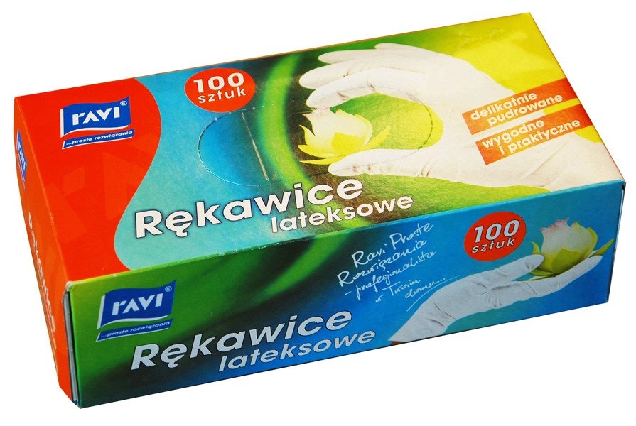 - Rękawice lateksowe rozmiar L Ravi opakowanie 100 sztuk