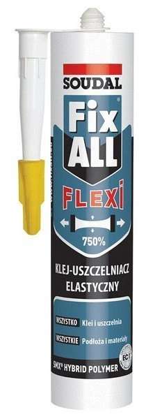 Uszczelniacz Soudal FIX-ALL Flexi Biały 280ml to nowoczesny, jednoskładnikowy produkt oparty na polimerach hybrydowych SMX. Łączy w sobie funkcje uszczelniacza i kleju, oferując wyjątkową elastyczność oraz trwałość zarówno w warunkach wewnętrznych, jak i zewnętrznych. Dzięki neutralnemu utwardzaniu nie powoduje przebarwień, co pozwala na bezpieczne stosowanie nawet na delikatnych i porowatych materiałach. Produkt wyróżnia się doskonałą przyczepnością do różnych powierzchni, także wilgotnych, a po utwardzeniu można go malować farbami wodnymi. Jest odporny na promieniowanie UV, warunki atmosferyczne i pleśń, co zapewnia długotrwałą ochronę i estetyczny wygląd uszczelnionych miejsc.