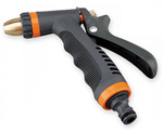 Zraszacz pistoletowy regulowany Gold Line to niezawodne narzędzie ogrodowe łączące wygodę z techniczną precyzją. Dzięki płynnej regulacji strumienia – od delikatnej mgiełki po silny natrysk – idealnie sprawdzi się przy podlewaniu roślin oraz myciu powierzchni. Miękki, ergonomiczny uchwyt zwiększa komfort pracy, a blokada dźwigni umożliwia ciągłe podlewanie bez zmęczenia dłoni. Solidna konstrukcja gwarantuje trwałość, a uniwersalne zastosowanie czyni go niezastąpionym w każdym ogrodzie.