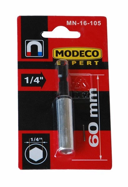 Uchwyt do grotów 60mm Modeco MN-16-105 znajduje zastosowanie podczas wszelkiego rodzaju prac montażowych, naprawczych i serwisowych. Idealnie sprawdzi się w warsztacie, podczas prac instalacyjnych, a także w domowych projektach majsterkowych wymagających precyzyjnego wkręcania i wykręcania śrub z użyciem różnych bitów.